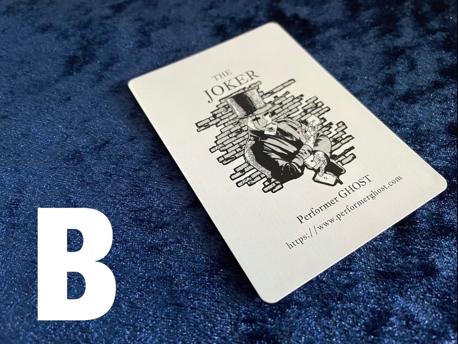 字札にもワンポイントで仮面のマークがあしらわれております。また2枚のジョーカーは同デザインでGHOSTの仮面が描かれております。ボーナスカードとしてブランクフェイスカードが1枚付属します。